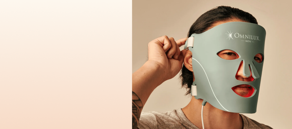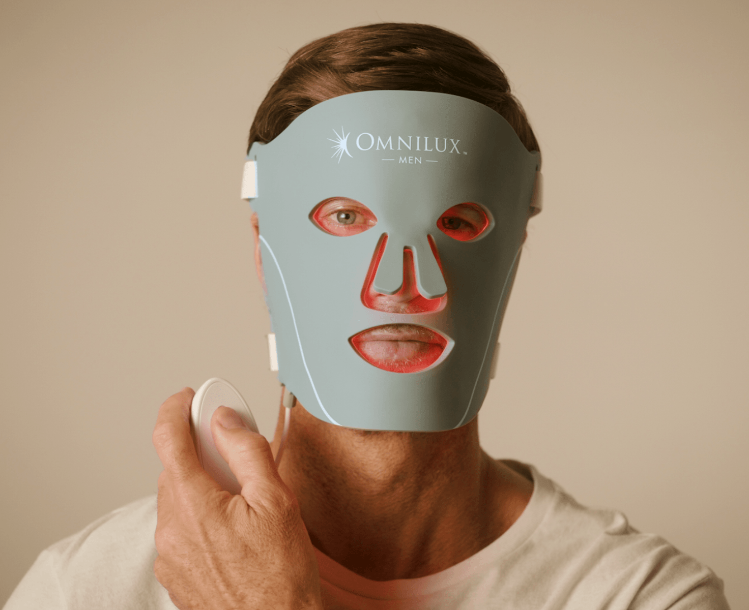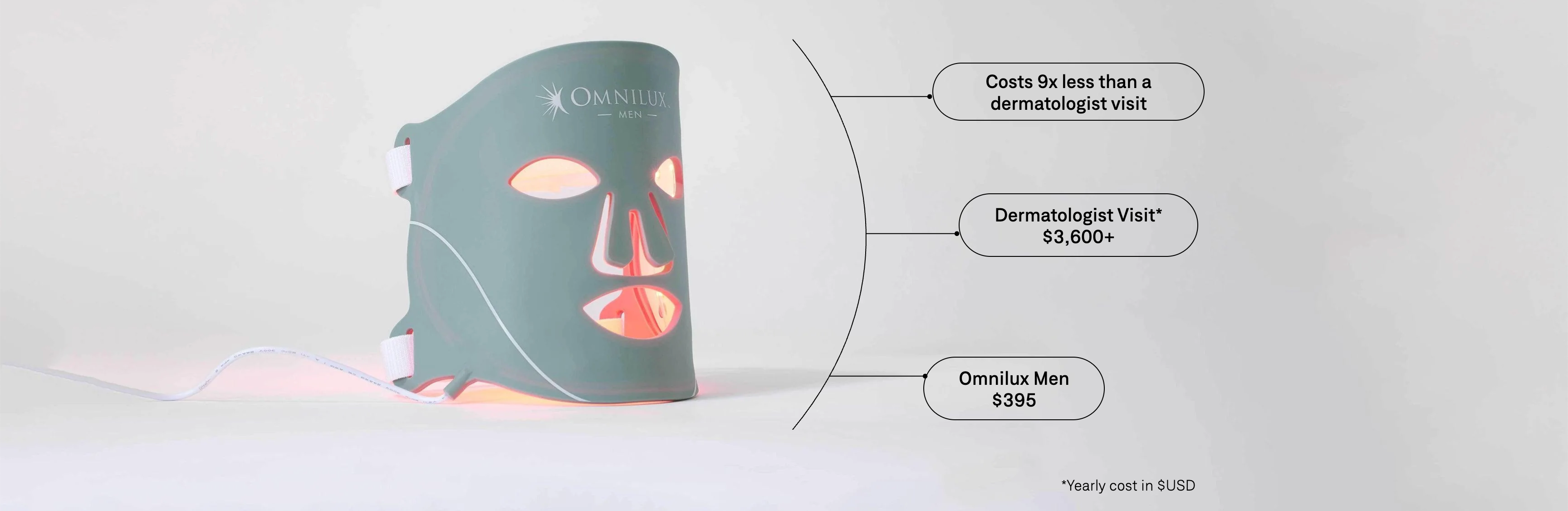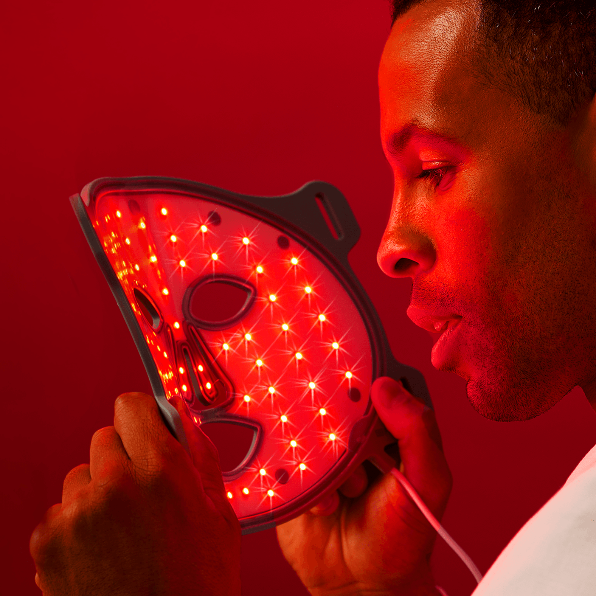FDA-cleared, dermatologist-recommended red light therapy device with clinically proven results for men's skin rejuvenation.