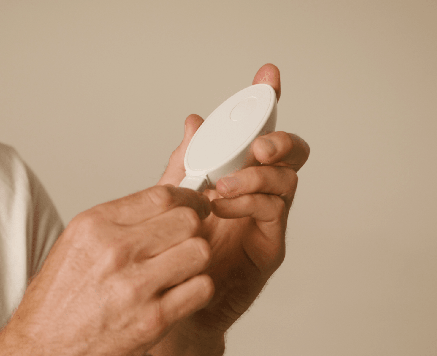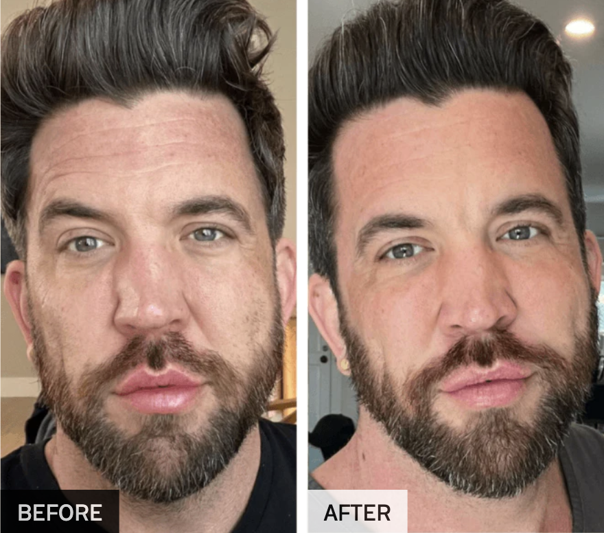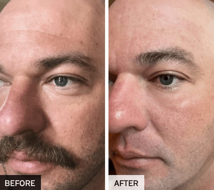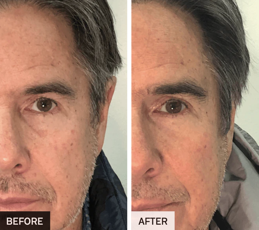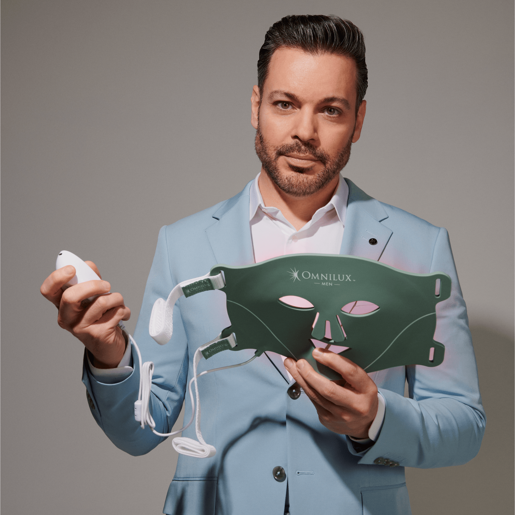 FDA-cleared, dermatologist-recommended red light therapy device with clinically proven results for men's skin rejuvenation.
